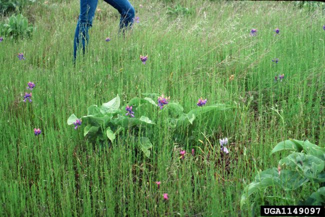 Small bugloss is a branching, leafy annual covered with stiff hairs that grow 1-3 feet tall.